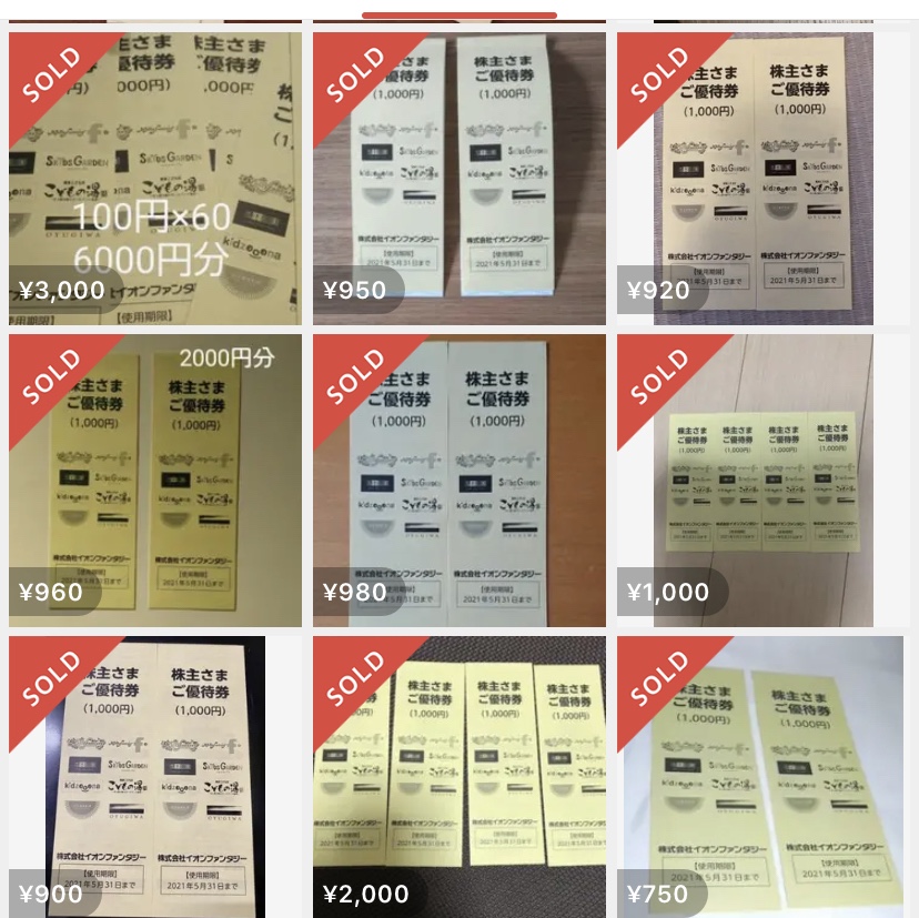 イオンファンタジーの株主優待のメルカリ相場は?