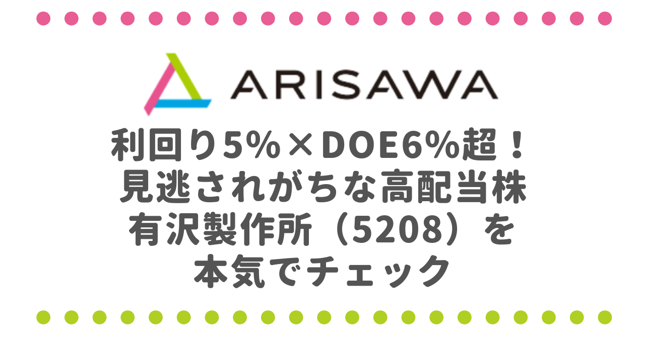 そう感じさせてくれるのが、有沢製作所(5208)です。配当利回りは5%超え、さらにDOE(株主資本配当率)も6%超えという、圧倒的な株主還元姿勢を示す銘柄。しかも財務も安定しており、業績も一定の成長性を維持。“配当金で資産を育てたい”という方には、まさにぴったりの存在と言えるでしょう。